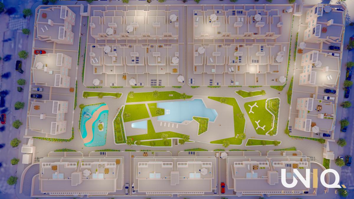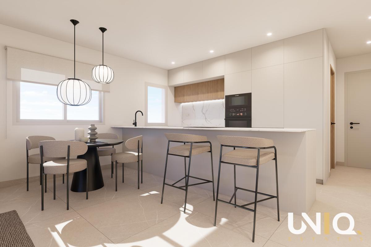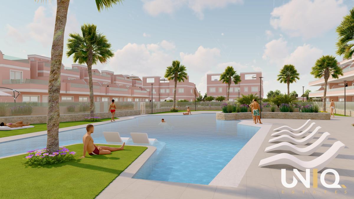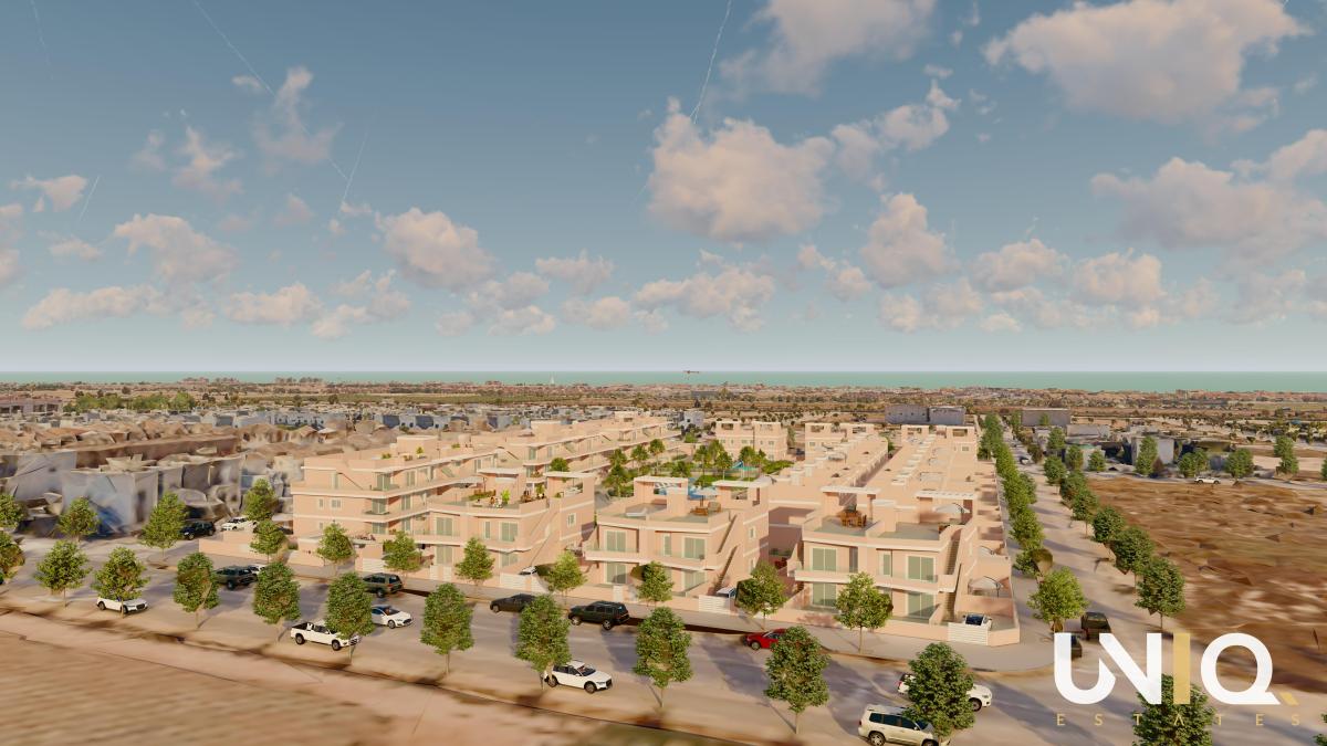 In een rustige, groene wijk net buiten het centrum van Pilar de la Horadada, vind je een ideaal woonconcept dat luxe en gemeenschapsgevoel harmonieus samenbrengt. Hier heb je de vrijheid om te kiezen uit een reeks stijlvolle nieuwbouwopties met telkens 3 slaapkamers en 2 badkamers – elk met hun eigen charme, uitzicht en buitenruimte. Je hebt keuze uit vier woontypes, afgestemd op uiteenlopende levensstijlen: de gelijkvloerse appartementen beschikken over een zonnige privétuin, ideaal voor wie graag buiten leeft. De tussenappartementen combineren comfort met overzichtelijke indelingen. Voor wie hoger wil wonen, bieden de penthouses een spectaculair privé-solarium, compleet met buitenkeuken, jacuzzi en douche – perfect voor lange avonden onder de sterren. En dan zijn er nog de townhouses: gesloten bebouwingen met meerdere niveaus en royale terrassen, geschikt voor gezinnen of wie graag ruim woont. Wat deze enclave zo bijzonder maakt, is de centrale gemeenschappelijke zone: een sfeervolle oase met aangelegde tuinen, een zwembad en een aparte speelzone voor kinderen. Alles is ontworpen om verbondenheid te stimuleren en tegelijk volop privacy te garanderen. Binnen overtuigen de woningen met doordachte details. Grote ramen met dubbel glas zorgen voor natuurlijk licht en thermisch comfort. De keukens zijn strak vormgegeven met boven- en onderkasten in wit of eiken, kwarts werkblad en hoogwaardige apparatuur zoals een oven, vaatwasser en wasmachine – allemaal inbegrepen. In de badkamers vind je zwarte kranen, glasdouches en stijlvolle meubels. De afwerking is warm en hedendaags, met keuze in vloeren en wandbekleding die je kunt personaliseren. Parkeerplaatsen zijn inbegrepen. Geef ons een seintje als je meer info wenst!