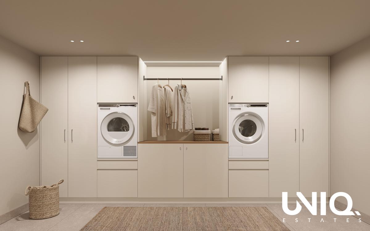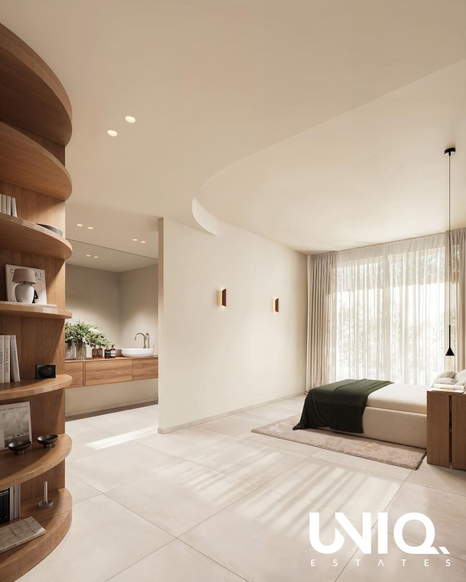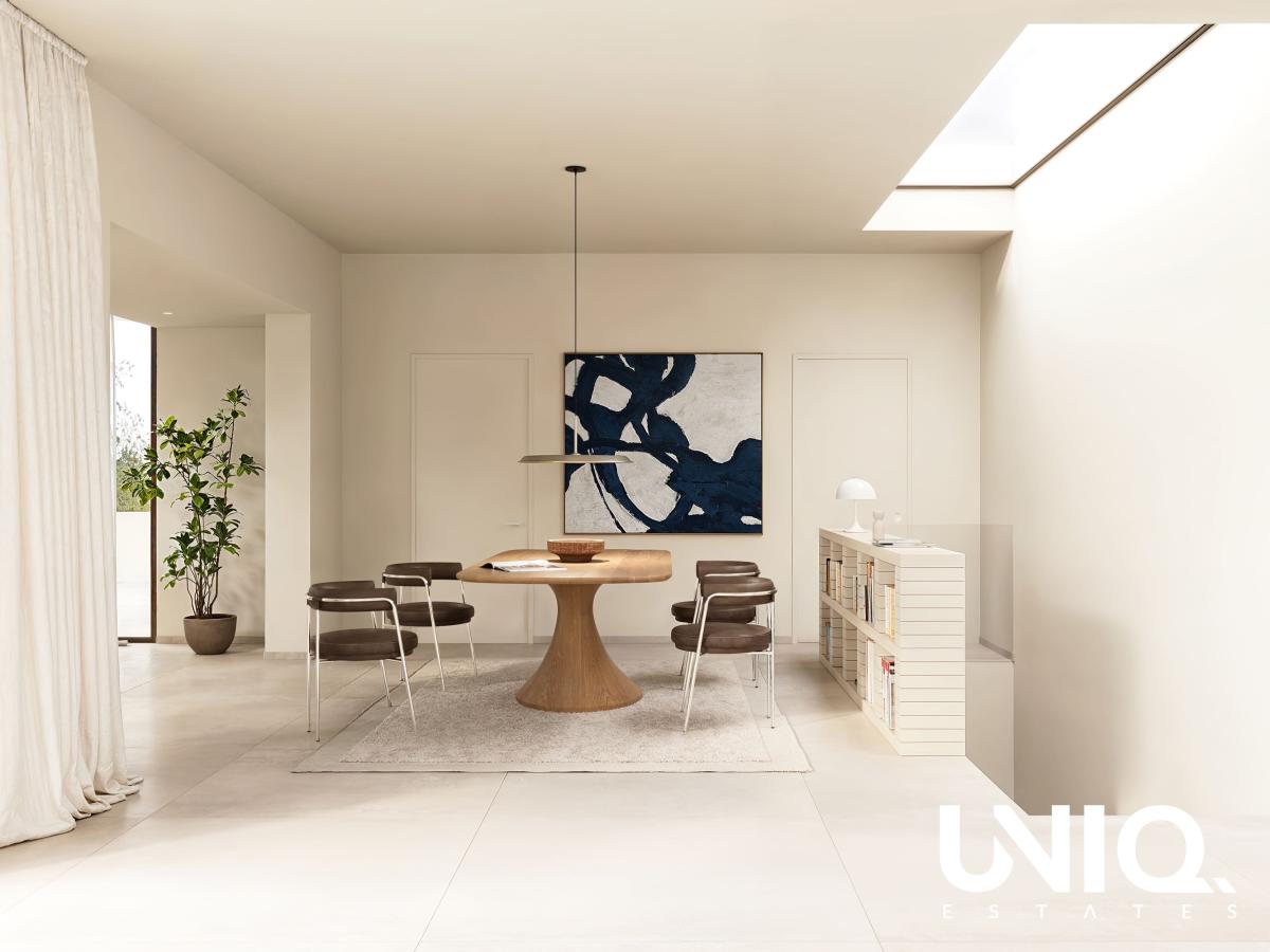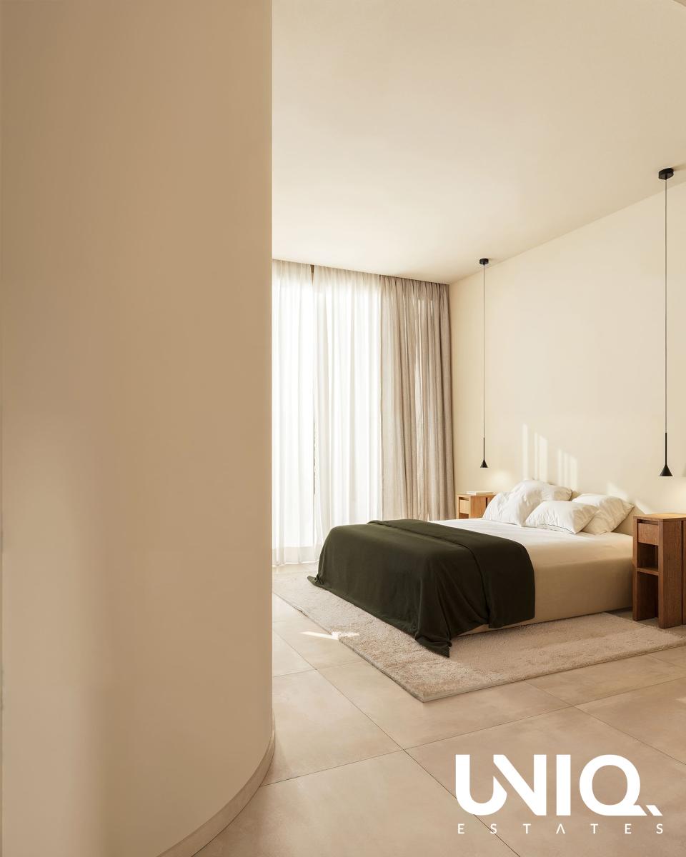 Buiten wachten het privézwembad, de buitendouche en een verzorgde entree met mediterrane beplanting. De villa is ontworpen om het hele jaar door in te leven, dankzij vloerverwarming in de badkamers, een aerothermisch systeem en een geavanceerd aircosysteem met zonecontrole.