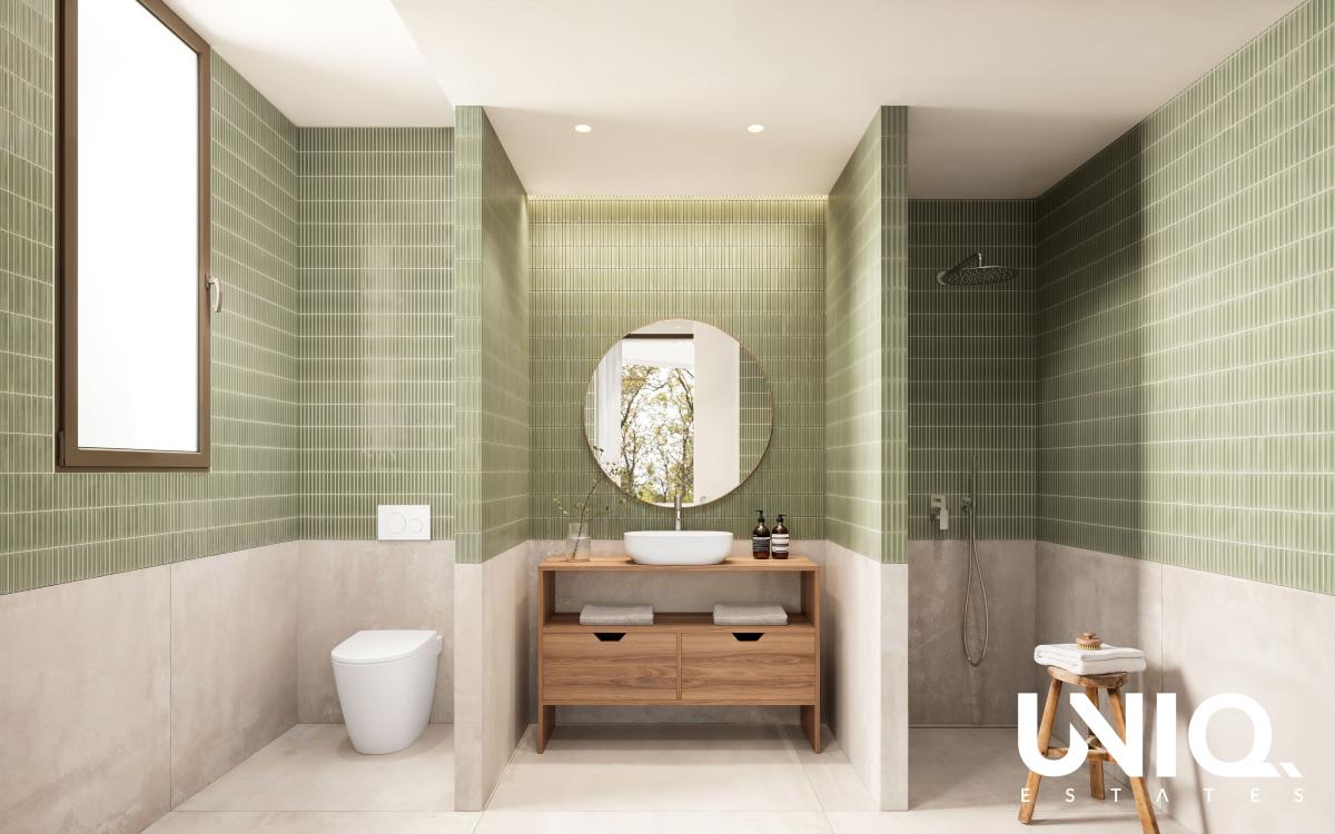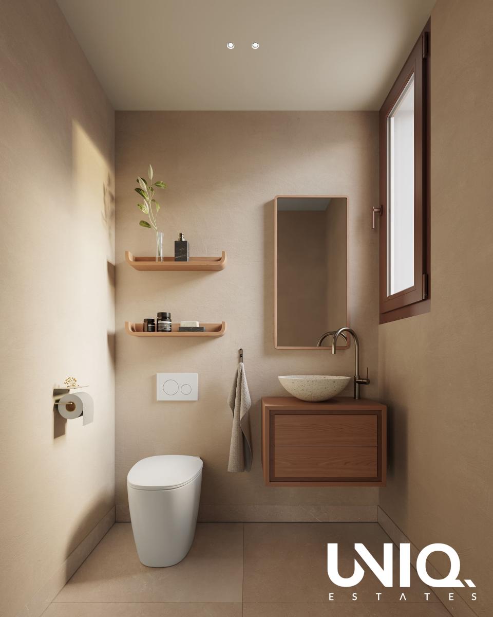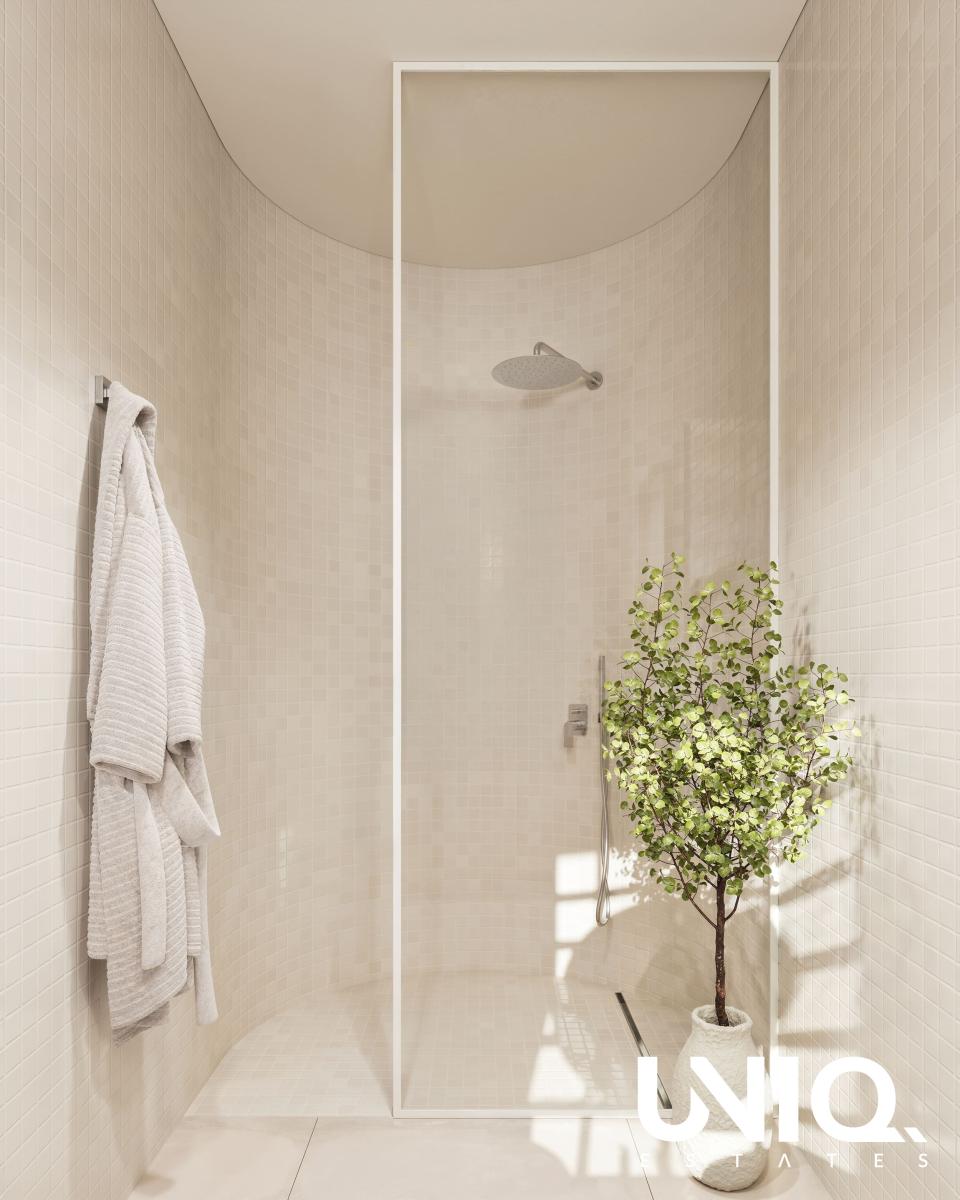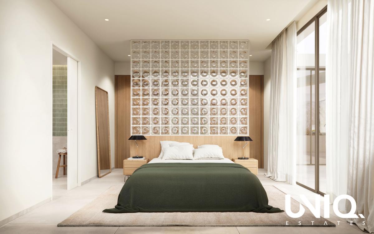 Buiten wachten het privézwembad, de buitendouche en een verzorgde entree met mediterrane beplanting. De villa is ontworpen om het hele jaar door in te leven, dankzij vloerverwarming in de badkamers, een aerothermisch systeem en een geavanceerd aircosysteem met zonecontrole.