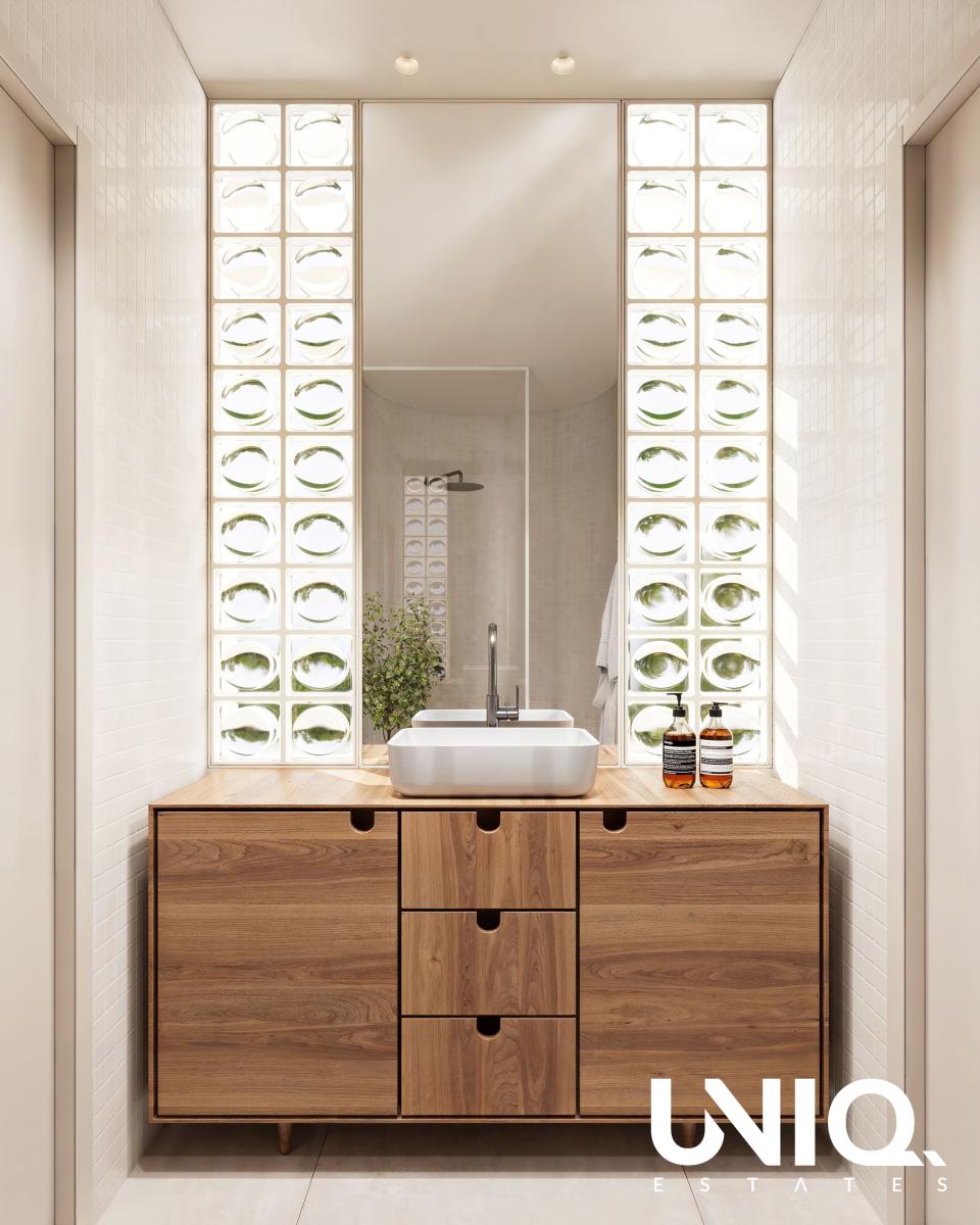 Op de begane grond bevinden zich 3 comfortabele slaapkamers en 2 elegante badkamers, elk met strakke afwerkingen en zachte, natuurlijke tinten. Grote ramen zorgen voor veel lichtinval en bieden uitzicht op de groene omgeving.