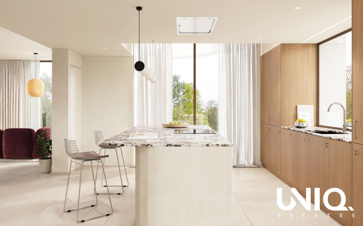 Wat deze villa’s écht onderscheidt, is het verrassende woonconcept: de volledige leefruimte bevindt zich op het ondergelegen niveau. Deze riante onderbouw is geen kelder, maar een volwaardig leefniveau, afgewerkt in dezelfde hoogwaardige stijl als boven. Hier vind je een riante leefruimte, een volledig uitgeruste keuken, een eetzone en een vierde slaapkamer met badkamer ensuite.