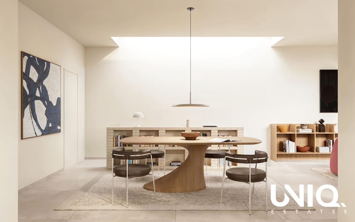 Overal zijn er ingebouwde kasten, elektrische rolluiken en doordachte lichtaccenten, zowel binnen als buiten.