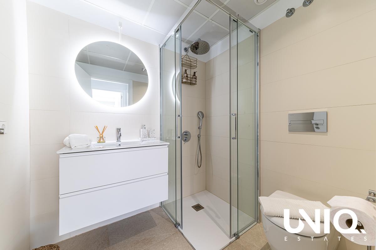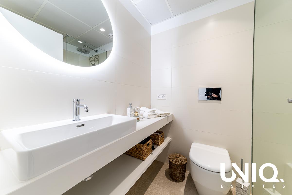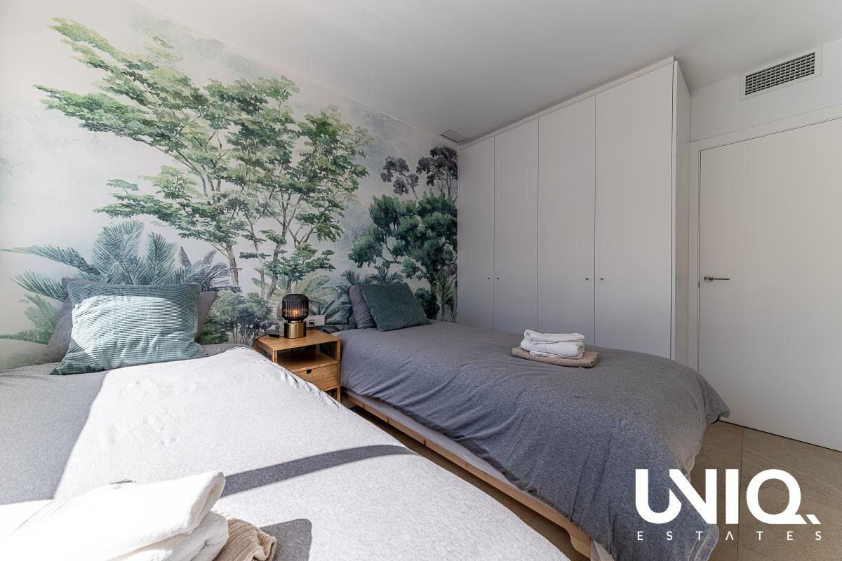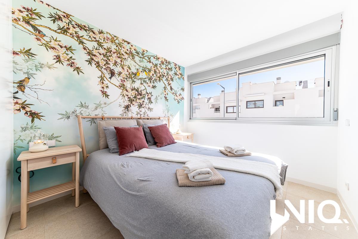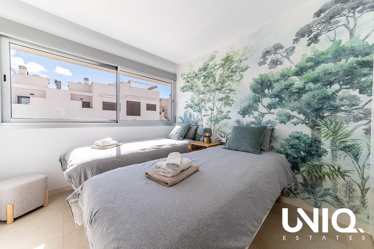 In Los Balcones, aan de rand van Torrevieja, wacht een penthouse dat je elke dag doet wegdromen bij de Spaanse zon. Je woont hier vlak bij het iconische roze zoutmeer: een landschap dat van kleur verandert met het licht, terwijl jij op hoogte geniet van open zichten en frisse lucht. Dit is zo’n plek waar je ’s ochtends de deuren naar het terras opent en meteen voelt: hier klopt het. Binnen is alles gericht op comfort en eenvoud. De leefruimte baadt in natuurlijk licht dankzij brede raampartijen, waardoor binnen en buiten moeiteloos in elkaar overvloeien. Met 2 slaapkamers en 2 badkamers is de indeling ideaal voor eigen gebruik én aantrekkelijk voor verhuur. De woonoppervlakte bedraagt 75 m² en buiten krijg je nog eens 75 m² terrasruimte om het leven letterlijk groter te maken: loungen, dineren, zonnen, of een rustige werkplek met uitzicht. Het gebouw is recent (09/2023) en de afwerking oogt strak en verzorgd, met een moderne, rustige basis die je makkelijk eigen maakt. Extra fijn: de stijlvolle binnen- én buitenmeubilair, ingericht door een professional, zijn inbegrepen. In de residentie geniet je bovendien van een gemeenschappelijk zwembad en groene zones, met winkels op ongeveer 200 m, de zee op 3 km, golf op 2 km en de luchthaven op circa 50 km. Op zoek naar een Spaanse getaway die je in no-time kan gebruiken? Dan kan dit een mooie opportuniteit zijn!