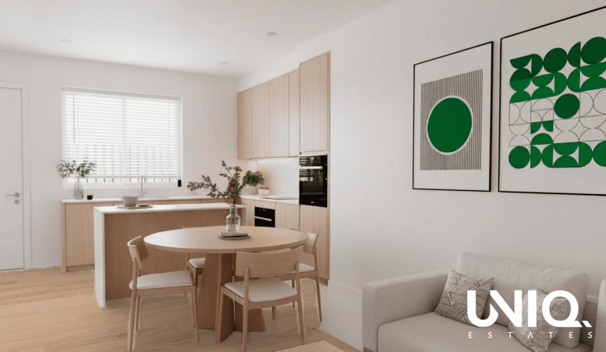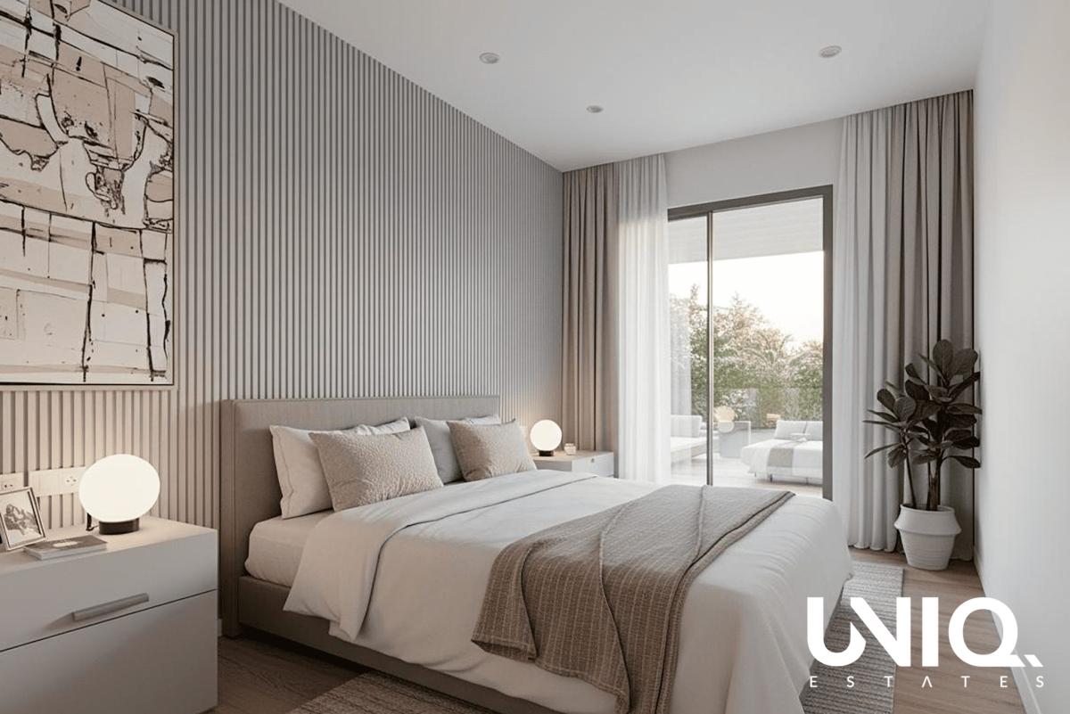 Grote schuifpartijen halen de buitenlucht naar binnen, terwijl de afwerking bewust tijdloos blijft: porseleinen vloeren in formaat 60x60, strakke interieurlijnen en badkamers in helder porselein met een warme houtlook-accentwand.