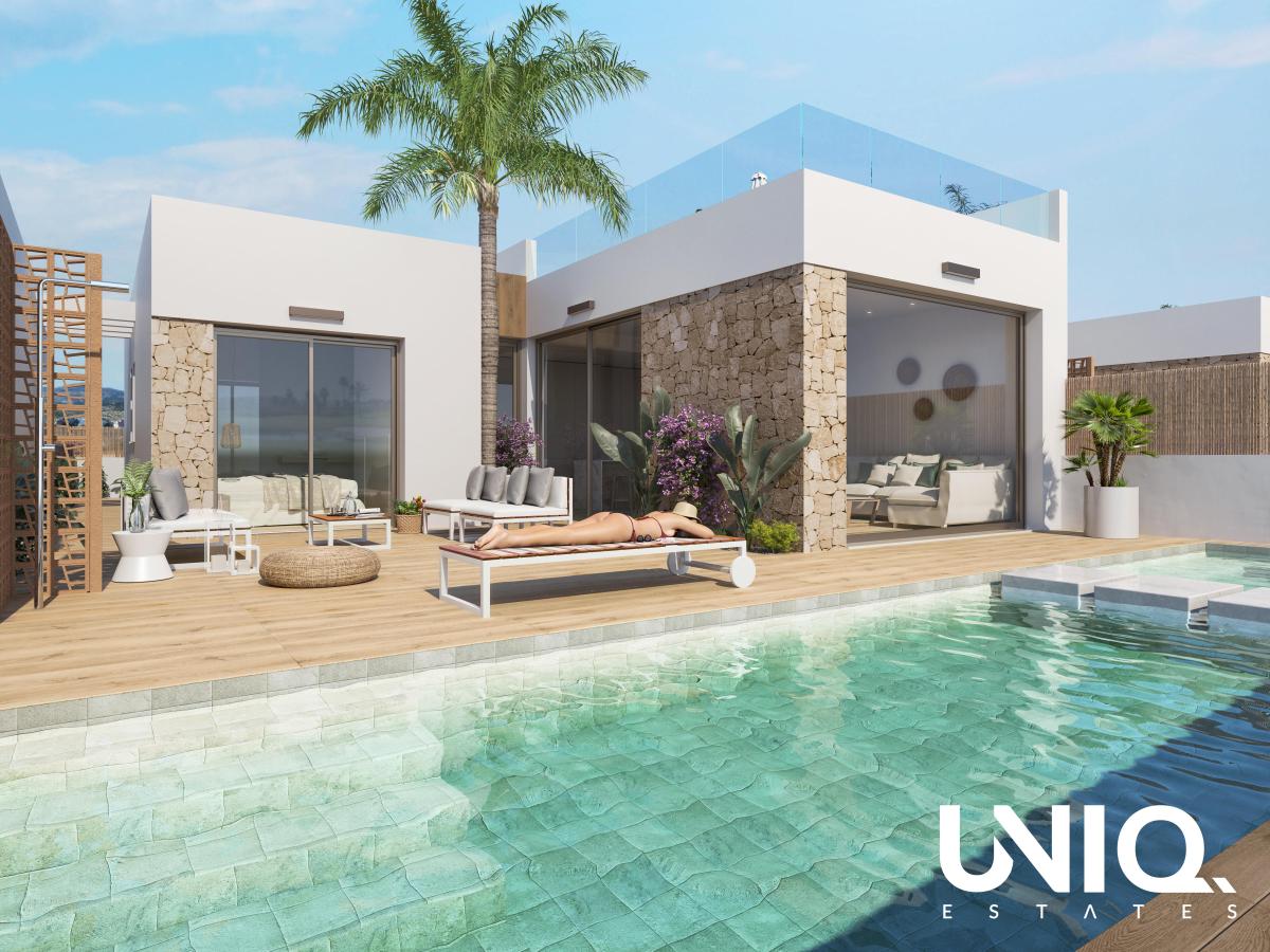 Je merkt het al vóór je binnenstapt: hier draait alles om rust, ruimte en dat onverstoord uitzicht op La Serena Golf. Geen vluchtige “golf view”, maar écht frontline – met waterpartijen en groen dat zich als een zorgvuldig onderhouden tapijt door het landschap vlecht. La Serena staat bekend om zijn meren en vegetatie, met water in 16 van de 18 holes, én het fijne detail dat je gewoon te voet richting het centrum van Los Alcázares wandelt. Zo voelt het sereen, maar nooit afgelegen. De villa’s zelf houden het strak en warm tegelijk: witte volumes, accenten in natuursteen voor het authentieke gevoel en grote schuiframen die het buitenleven naar binnen trekken. Binnen vind je 3 slaapkamers op een praktische én gelijkvloerse indeling. Ideaal voor jonge en oudere bezoekers dus. Afwerking is bewust gekozen voor comfort in elk seizoen: aluminium raamprofielen met thermische onderbreking, gemotoriseerde rolluiken in de slaapkamers en glas met zonwerende eigenschappen. Airco is voorzien via pre-installatie met kanalen. Warm water loopt via een aerotherm-boiler van 110 l, en de woning heeft energieklasse B. Buiten wacht je privézwembad, omringd door houtlook terrastegels en een omheining die privacy geeft zonder het open gevoel te verliezen. Voor de echte zonnekloppers kan er optioneel een solarium voorzien worden. Er is parkeerruimte op het perceel en een video-intercom aan de toegang. En dan die extra luxe: vanuit je woonkamer of master bedroom kijk je uit op altijd groen – een uitzicht dat nooit “op” raakt, en tegelijk heerlijk verhuurbaar blijft door de sterke locatie op de Costa Cálida, op 25 min van Murcia luchthaven en 55 min van die van Alicante. Jouw getaway onder de Spaanse zon? Laat ons iets weten en dan bezorgen we je geheel vrijblijvend meer informatie.