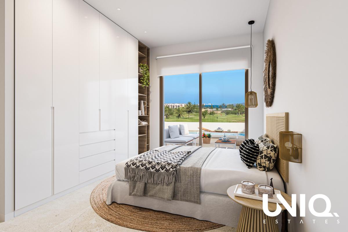 En dan die extra luxe: vanuit je woonkamer of master bedroom kijk je uit op altijd groen – een uitzicht dat nooit “op” raakt, en tegelijk heerlijk verhuurbaar blijft door de sterke locatie op de Costa Cálida, op 25 min van Murcia luchthaven en 55 min van die van Alicante.