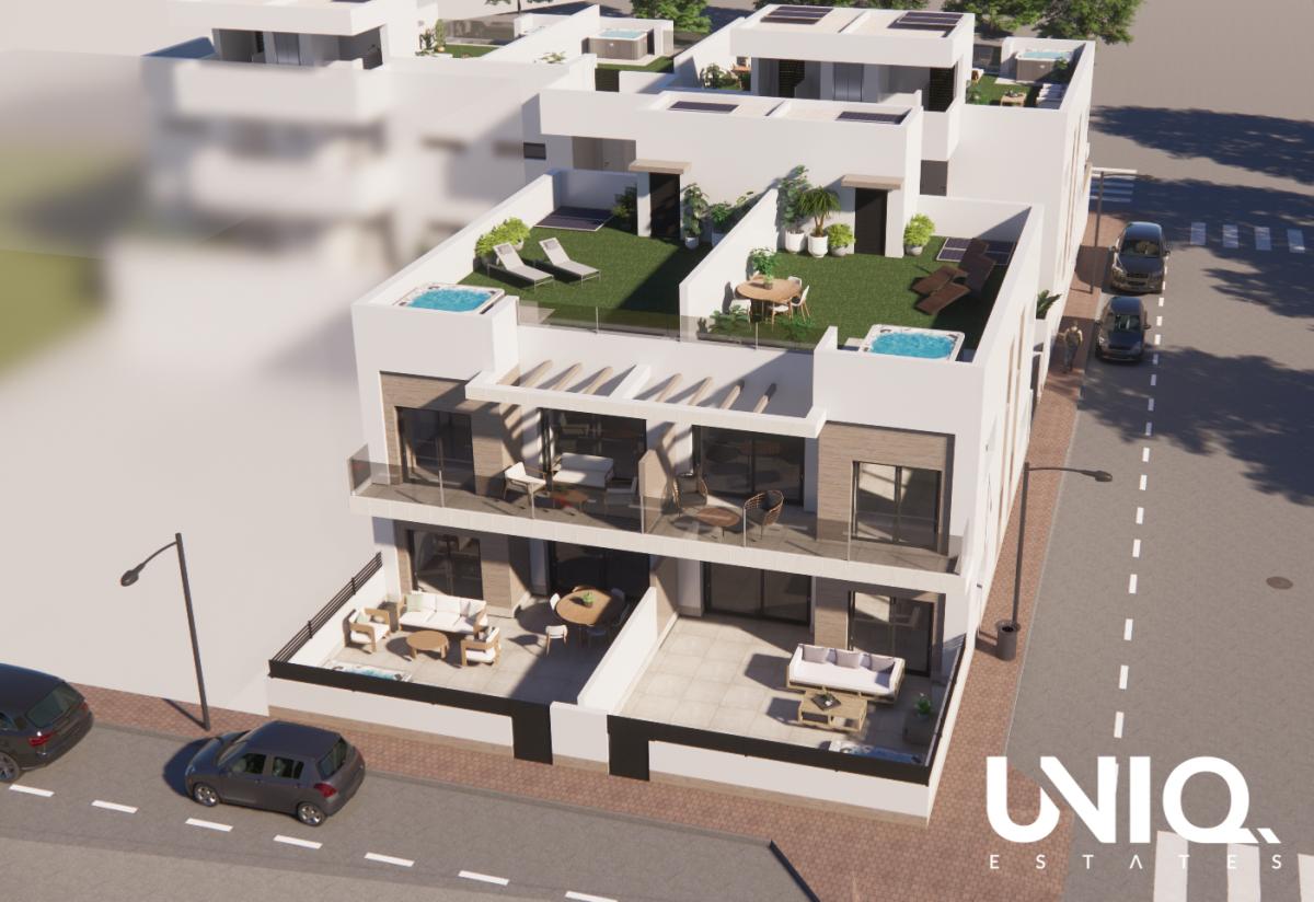 LANCERINGSACTIE: gratis parkeerplaats en jacuzzi, profiteer nu! Net buiten het centrum van Rojales vind je deze kleinschalige residentie van slechts 14 moderne woonunits, slim ingeplant voor wie houdt van rust én spontaniteit. ’s Ochtends haal je te voet je koffie in het dorp, later op de dag wandel je langs winkels, bars en terrasjes — en als je zin hebt in iets anders, liggen Benijófar en Ciudad Quesada tevens vlakbij. Hier woon je niet “afgelegen”, maar precies goed: privé wanneer je dat wil, verbonden wanneer het uitkomt. De appartementen zijn praktisch ingedeeld met telkens 2 slaapkamers, 2 badkamers en een open leefruimte die natuurlijk licht binnenlaat, met grote schuiframen richting jouw buitenplek. Op het gelijkvloers geniet je van een royaal terras en tuinzone, ideaal voor lange lunches en een beetje groen zonder onderhoudsstress. Kies je voor een woning op de verdieping, dan krijg je naast het balkon ook een indrukwekkend dakterras van 69 m². Te gebruiken voor yoga bij zonsopgang, een outdoor lounge, een avond onder de sterren, ... Ook binnenin zit het goed: vloerverwarming in de badkamers, ingebouwde keukenapparatuur (incl. vaatwasser en wasmachine), elektrische rolluiken in de slaapkamers, “Guardian Sun”-beglazing, inbouwkasten met ladeblokken, veiligheidsdeur, pre-installatie voor airco via kanalen én pre-installatie voor EV-laden. Bovendien liggen er zonnepanelen voor privéverbruik — een subtiele plus voor comfort én rendement, zeker in verhuur. Wil je vrijblijvend meer weten over de beschikbare units? Bel of mail ons vandaag nog.