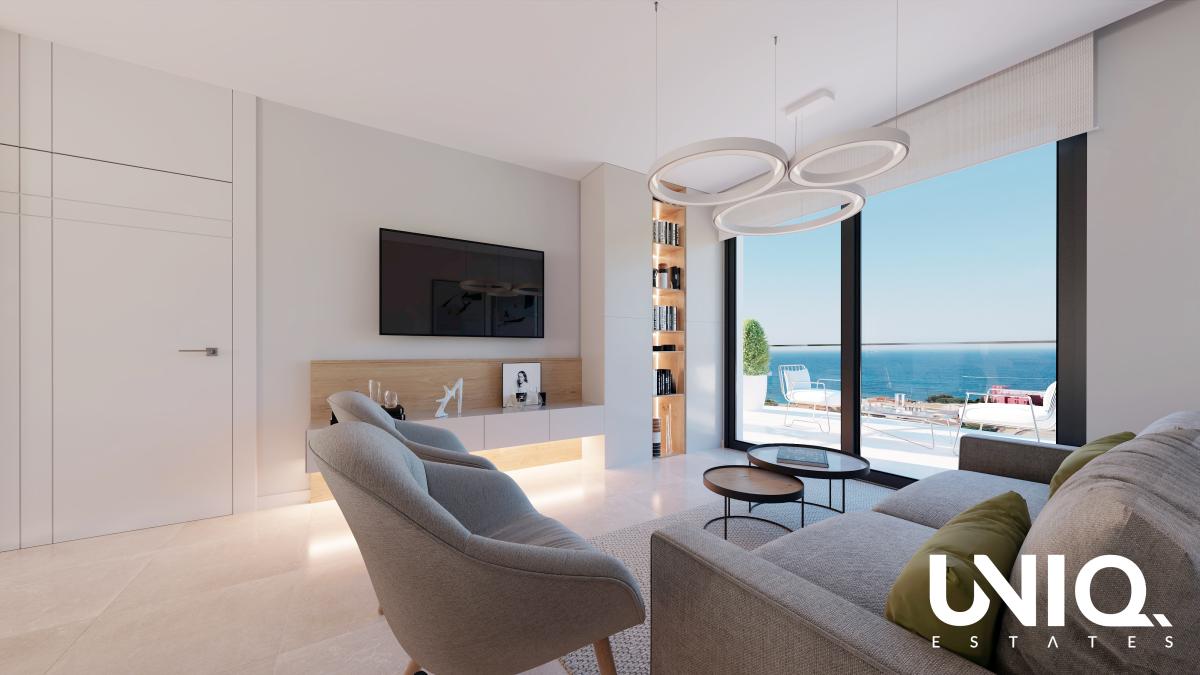 The apartments have been designed with attention to aesthetics, light, and views. Large windows offering magnificent sea views, smooth transitions to the outside, and glass balustrades create a feeling of freedom and openness.