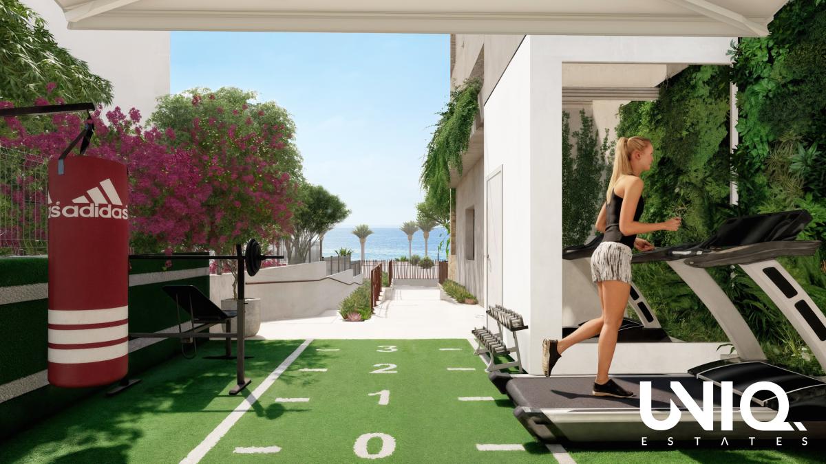 The residence itself offers a range of amenities that are rarely combined on the coast: an infinity pool with sea views, a heated jacuzzi, an outdoor gym, and a sun terrace surrounded by Mediterranean plants. Everything is finished to the finest detail.
