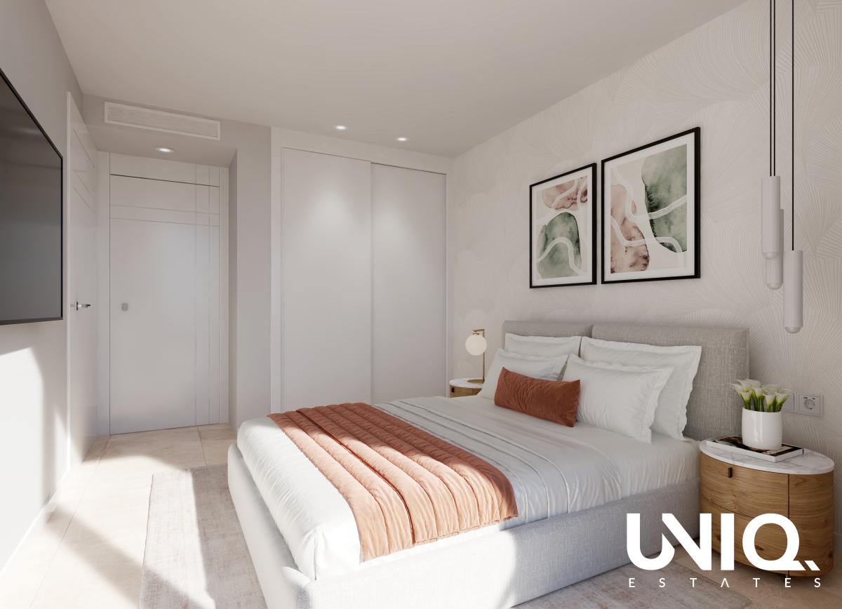 If you long for a place where the horizon forms the backdrop every day, you will find your home here. On the serene dike of Villajoyosa, just a few steps from the sandy beach, lies this small-scale residence where luxury and simplicity go hand in hand. The location is sublime: close to the charming center, but just outside the busy rhythm — just right for those seeking peace and quiet without sacrificing liveliness. The apartments have been designed with attention to aesthetics, light, and views. Large windows offering magnificent sea views, smooth transitions to the outside, and glass balustrades create a feeling of freedom and openness. Inside, you will find an interior where quality is palpable. Floors with a warm wood look or refined porcelain, high interior doors, built-in wardrobes with a textile structure: every detail has been carefully chosen. The kitchen is not only sleekly finished, but also fully equipped — including stylish lighting and appliances from top brands. In the bathrooms, rain showers, illuminated mirrors, and elegant finishes create a feeling of wellness in your own home. Each home has a private parking space and a separate storage room. The residence itself offers a range of amenities that are rarely combined on the coast: an infinity pool with sea views, a heated jacuzzi, an outdoor gym, and a sun terrace surrounded by Mediterranean plants. Everything is finished to the finest detail. Whether you come for the peace and quiet, the light, or the view—here, you don't have to choose. This place offers it all, with the sea as your constant companion.