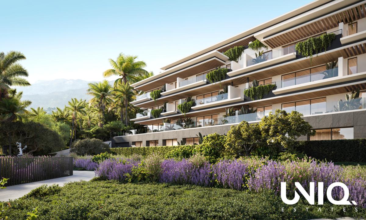 In the green hills of Mijas, where the air is clear and the sea is always in sight, a special residential environment is emerging. Here, spacious 2- or 3-bedroom apartments are available, each designed to optimally blend outdoor and indoor living. You can choose from 3 unique lifestyles: a ground floor apartment with a private garden, a middle floor with peace and quiet and views, or an exclusive penthouse with a roof terrace where sunrises and sunsets become part of your daily ritual. The architecture is modern and bright, with clean lines and understated elegance. Large windows provide an abundance of daylight and a constant connection with the surrounding landscape. Each apartment offers a spacious living area with an open kitchen, wide terraces, and thoughtful details: from underfloor heating in all rooms to smart lighting and climate control systems that can be operated via your smartphone. The kitchens are open, light, and fully equipped with high-quality built-in appliances from leading European brands. Quality cabinets, porcelain countertops, and integrated LED lighting make cooking an aesthetic experience. The bathrooms combine microcement, glass showers, and designer faucets to create a spa-like atmosphere—with the option of a bathtub in the master bathroom. The living comfort continues outside the home. The gated residence is car-free, safe, and completely focused on well-being: from a fitness and wellness area with sauna and hammam to coworking spaces, panoramic swimming pools, and intimate lounge areas. Green areas, walking paths, viewpoints, and even a pet washing station make this a place where every detail is just right. An ideal base for those who want to live in style, tranquility, and with all the amenities of the Costa del Sol within easy reach. Could this soon be your permanent home?
