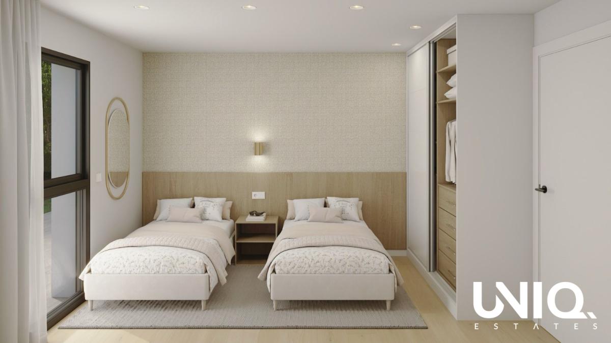 In La Nucía — the sporting capital of the Costa Blanca — you’ll find yourself in a green, open environment with an exceptional range of sports facilities nearby: from padel and tennis to athletics, football, BMX, skateboarding, and more. Ideal for those who love the outdoors and for those who see rental potential in a region where athletes and active holidaymakers flock all year round. The development comprises 64 modern apartments and penthouses with 2 or 3 bedrooms, designed around light, space and outdoor living. Each residential unit features spacious terraces; on the ground floor, you can also enjoy a garden combining planted areas and paved surfaces. If you opt for a penthouse, the private roof terrace becomes your own rooftop for long lunches and balmy evenings. Or to recover after a workout, of course. Inside, everything is finished to the highest standard: external joinery in lacquered aluminium with thermal break and double glazing, motorised roller shutters in the living area and bedrooms, a security door, built-in wardrobes, … The kitchen is fully fitted with appliances (Bosch or equivalent) and a Silestone-style worktop. Bathrooms are fully equipped with vanity units, mirrors, shower screens and rain showers. Climate control is provided all year round thanks to aerothermal heating and cooling via ducts. Life outside your apartment is also well catered for: a large lagoon-style swimming pool with night lighting, Mediterranean gardens, a fitness room and separate areas such as a social club, kids’ garden and co-working space. Will you reserve your place within the project in the heart of La Nucía, the sports hub of the Spanish coastline?