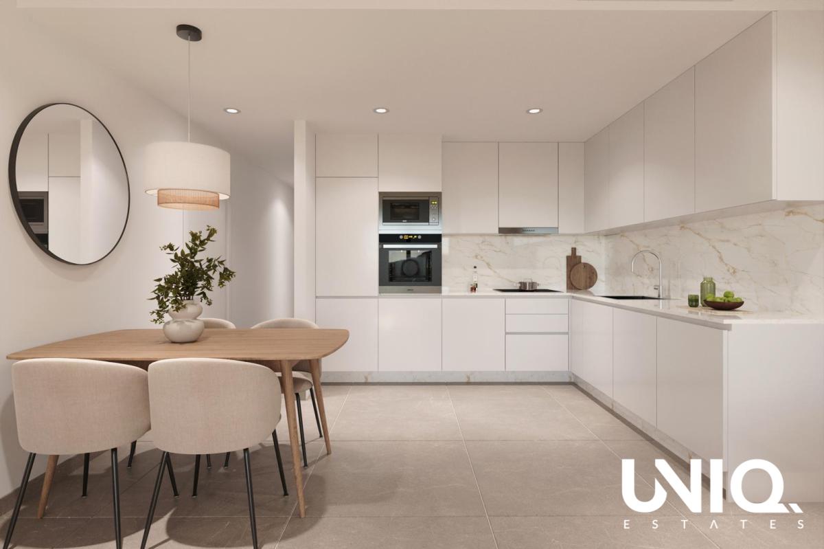 Ici, vous ne vivez pas « près » de Torrevieja : vous êtes en plein cœur de la ville. À deux pas du tout nouveau port de plaisance et de l'épicentre de la ville, vous passez directement de votre porte d'entrée aux rues animées : des cafés pour votre rituel matinal, des tapas au coin de la rue, des magasins... Et c'est justement ce qui rend cet endroit si attrayant en toute saison. En été, vous profitez des longues soirées et de l'ambiance maritime ; en hiver, Torrevieja reste ouverte, ensoleillée et étonnamment dynamique. Le bâtiment est épuré et contemporain, avec des façades blanches et des balustrades en verre qui confèrent aux terrasses un aspect lumineux et moderne. À l'intérieur, vous avez le choix entre des appartements de 2 ou 3 chambres, tous dotés de 2 salles de bains. Idéal comme résidence secondaire, mais aussi pratique pour ceux qui recherchent un potentiel locatif. Les finitions sont soignées et durables : sols en grès cérame, menuiseries en aluminium à rupture thermique, double vitrage et volets roulants motorisés pour plus de confort et de tranquillité. Le véritable atout se trouve tout en haut. Sur le toit se trouve une piscine commune : un endroit où vous pouvez vous détendre loin du rythme effréné de la ville, faire quelques longueurs ou simplement vous installer avec un livre. Si vous souhaitez aller encore plus loin, optez pour un penthouse avec solarium privé. Votre propre moment sur le toit, quand vous le souhaitez. Intéressé par un logement au cœur même de cette ville formidable ?