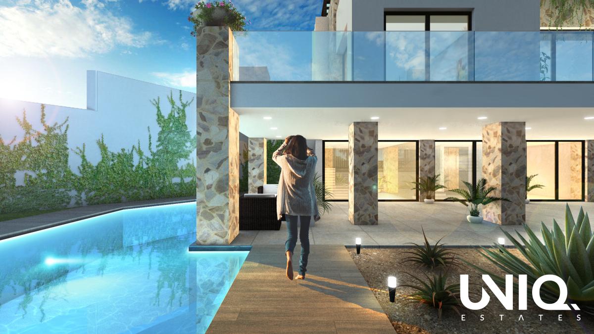 Les fenêtres sont en PVC de haute qualité avec vitrage de sécurité et équipées de volets roulants motorisés. Grâce à la porte blindée, vous pourrez partir l'esprit tranquille, même si vous envisagez d'utiliser la villa comme résidence secondaire ou de la mettre en location.