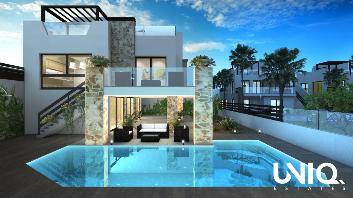 Située dans une impasse, en bordure du golf de La Marquesa, cette villa neuve est idéale pour ceux qui souhaitent emménager sans attendre. Choisissez cette maison dès aujourd'hui et installez-vous rapidement : prête à emménager, vous pourriez recevoir les clés en quelques semaines seulement. Son emplacement est un atout majeur : profitez de l'ambiance golfique et de la vue dégagée sans pour autant habiter sur le domaine. Vous serez ainsi à deux pas du centre de Ciudad Quesada, de ses cafés, boutiques et restaurants. Les centres de Rojales et Benijófar sont également à proximité, vous permettant de conserver un mode de vie typiquement espagnol. À l'intérieur, tout est pensé pour votre confort et votre bien-être. Vous apprécierez les sols en porcelaine faciles d'entretien, les murs aux finitions élégantes, les sanitaires haut de gamme et les cabines de douche dans les salles de bains. Les fenêtres sont en PVC de haute qualité avec vitrage de sécurité et équipées de volets roulants motorisés. Grâce à la porte blindée, vous pourrez partir l'esprit tranquille, même si vous envisagez d'utiliser la villa comme résidence secondaire ou de la mettre en location. À l'extérieur, le plaisir est immédiat. Votre piscine privée est chauffée et équipée d'un éclairage, d'un banc de relaxation avec jacuzzi et d'une pompe à chaleur. Autour, vous trouverez des terrasses, une douche extérieure et un jardin entièrement clôturé avec gazon synthétique et agrumes. À l'étage, le solarium vous offre un véritable espace de vie extérieur, avec une cuisine d'été fermée et entièrement équipée. Les gourmets en ont déjà l'eau à la bouche. Le côté pratique a également été pensé pour l'avenir : une pré-installation pour un ascenseur desservant tous les niveaux est prévue. L'eau chaude est produite par énergie aérothermique. De plus, des panneaux photovoltaïques sont installés, permettant d'atteindre le classement énergétique maximal A. Envie d'en savoir plus ? Appelez-nous !