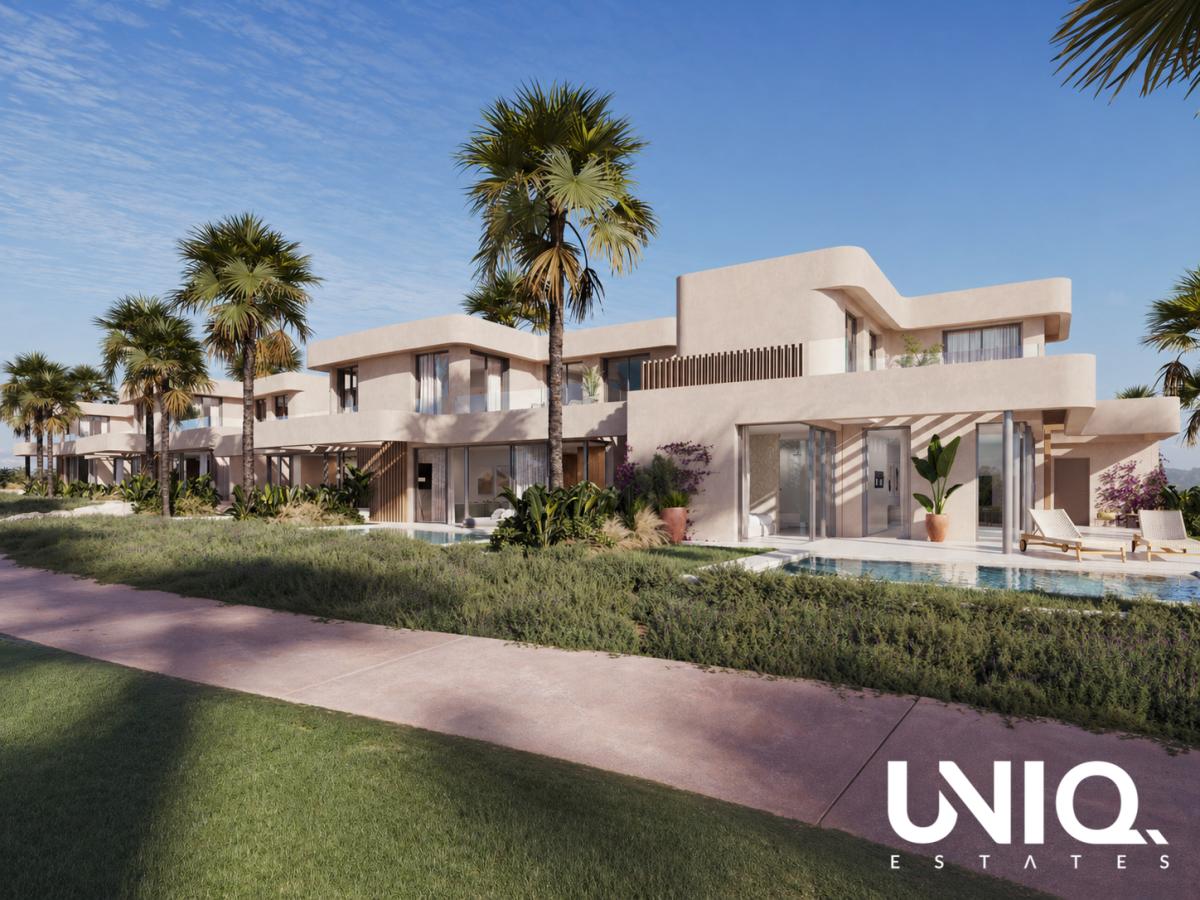 Dès que vous sortez sur votre terrasse, votre regard se pose immédiatement sur le fairway : ce sont des villas en première ligne de golf, conçues pour ceux qui aiment commencer chaque journée dans un espace lumineux, avec une vue qui ne lasse jamais. L'architecture joue sur des lignes arrondies, de grandes baies vitrées et de profonds avant-toits qui apportent ombre et élégance lorsque le soleil monte dans le ciel. À l'intérieur, tout semble logique et luxueux sans fioritures : un espace de vie ouvert avec cuisine et îlot, des matériaux dont on reconnaît immédiatement la qualité, et un agencement qui convient aussi bien à un usage personnel qu'à la location. Chaque villa compte 3 chambres et 3 salles de bains réparties sur 2 étages. À l'extérieur, votre piscine privée vous attend, idéalement située près de l'espace de vie, de sorte que l'intérieur et l'extérieur se fondent en un seul et même espace. Un détail pratique que vous apprécierez au quotidien : 2 places de parking sont incluses — 1 couverte et 1 à ciel ouvert — et il y a un local de rangement pour les sacs de golf, les vélos ou les affaires de plage. Les finitions sont modernes et confortables : sols en grès cérame, éclairage LED indirect, fenêtres en aluminium à rupture thermique et double vitrage avec contrôle solaire. La cuisine est entièrement équipée (four, micro-ondes, réfrigérateur, lave-vaisselle, plaque à induction avec hotte intégrée) et dispose même d'un lave-linge/sèche-linge. La climatisation est fournie, l'eau chaude est assurée par une technologie aérothermique et la ventilation avec récupération de chaleur maintient un climat intérieur frais et agréable. Bientôt votre petit bijou sur la côte espagnole ?