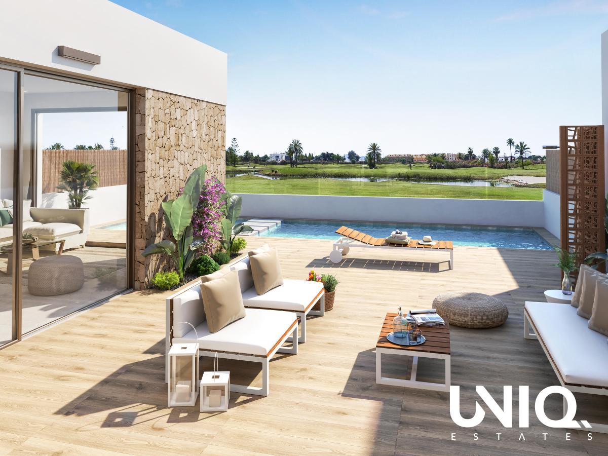 Het comfort van deze woningen is ongeëvenaard. Vloerverwarming in de badkamers en een complete airco-installatie maken het wonen hier het hele jaar door aangenaam. Buiten vind je een ruim terras met een privézwembad en een fraai aangelegde tuin – ideaal om te ontspannen en te genieten van het mediterrane klimaat.