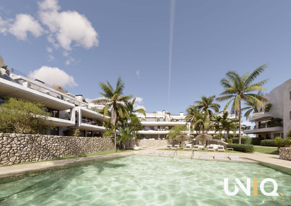 Where the sea and the mountains meet, a new way of living emerges. This exclusive residential project in Estepona consists of 78 apartments and penthouses with 1 to 4 bedrooms, each designed with soft lines, spacious terraces, and a natural connection to the landscape. The properties range from intimate apartments to spacious garden residences with private pools, and penthouses with roof terraces, sea views, and the option of an outdoor kitchen. Inside, light tones, natural stone, and wood create a serene atmosphere. Floor-to-ceiling windows let the Mediterranean sun shine in, bathing every living space in natural light. Kitchens are fully equipped with Siemens appliances and offer a choice of finishes. The residence itself feels like a boutique resort. Relax in the spa with heated indoor pool, sauna, and hammam, or opt for a refreshing dip in the outdoor saltwater pool. There is a coworking lounge overlooking greenery, a modern gym, and quiet gardens with palm trees and shaded areas. Located on the thriving west side of Estepona, close to the beach, the marina, and international schools, this project combines tranquility with accessibility. A place to live, enjoy, and invest—with the assurance of lasting value.