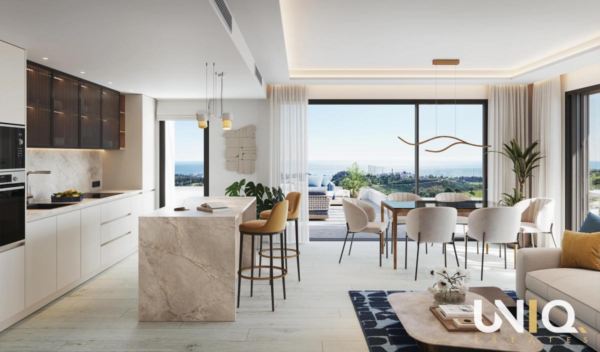 Wake up to views of the green rolling hills of a golf course, while the scent of freshly cut grass and the salty sea breeze gently waft through your garden — that's what living in this exclusive residence in Las Lagunas de Mijas is all about. Located in this prestigious residential concept, you can enjoy 2 or 3 full bedrooms, 2 bathrooms, and a separate guest toilet. The spacious open-plan living area flows seamlessly into a generous outdoor space. The kitchen is stylishly integrated and perfect for those who love design and functionality. Inside, high-quality finishes have been chosen, including large floor-to-ceiling windows and smart home automation for lighting and climate control. Outside, the luxury continues: you have access to a wellness center with spa, sauna, and hammam, a heated indoor pool, gym, coworking space, gastrobar, and even a game zone. All this is located just 5 minutes from the beach and 20 minutes from both Málaga and Marbella. Peace, connection, and experience come together here in a living experience that offers you the best of the Costa del Sol every day.