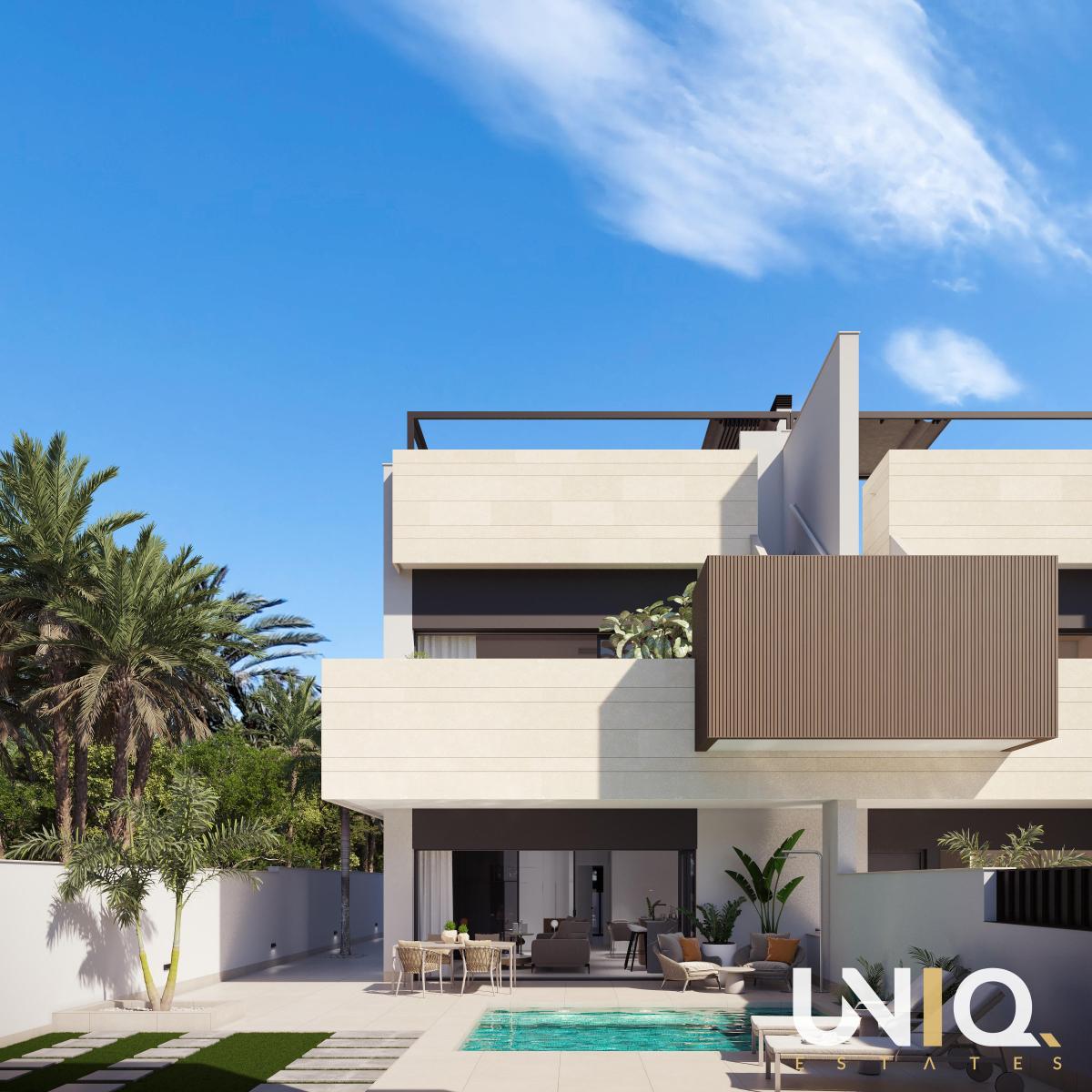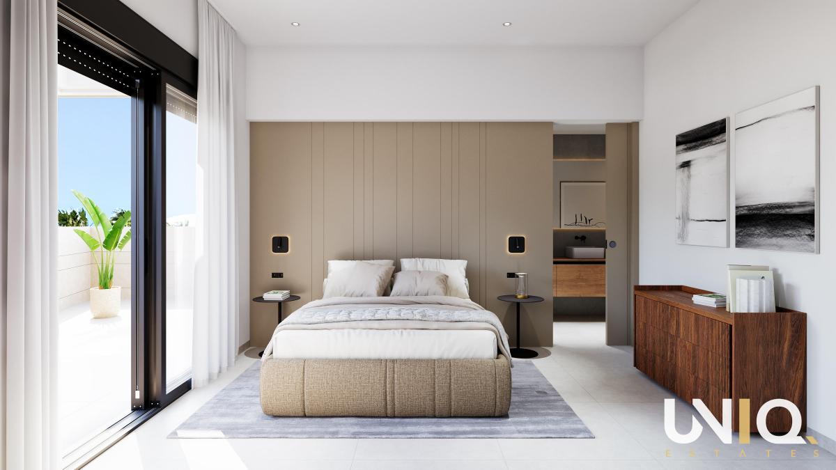 In a quiet neighborhood near Pilar de la Horadada, between the sea and the mountains, lies this exclusive penthouse where every moment of the day is worth its weight in gold. With a spectacular solarium, equipped with a private infinity pool with built-in jacuzzi, a summer kitchen, and even its own toilet, this is your private resort to escape to whenever you want. Inside, the same refined finish is continued: ceramic floors, an open living space bathed in natural light, and three full bedrooms. The master suite has a stylish dressing room with LED lighting and direct access to the terrace. Here too, top brands are standard: from the Bosch/Siemens kitchen to the complete air conditioning system. The solarium is equipped with an aluminum pergola with electrically operated sun blinds — perfect for lounging with a view of the Río Seco valley or dining under the stars in the evening. The icing on the cake? The beautiful private pool where you can become completely zen. A parking space and separate storage room for bicycles complete the picture. Here you will experience the essence of luxury: free, open, and always connected to the outdoors. Will this soon be your piece of paradise on this planet?