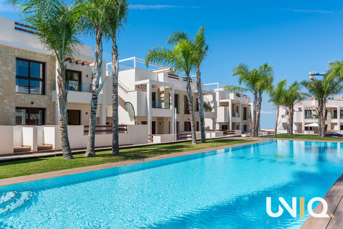 Ce superbe projet est situé dans un endroit de rêve, dans l'un des meilleurs quartiers de Torrevieja, plus précisément à Los Balcones. Il se compose d'appartements au rez-de-chaussée et de penthouses. Il y a un choix de 2 ou 3 chambres à coucher dans chaque cas. Les deux salles de bains sont standard. Ce penthouse a 2 chambres et est équipé de 2 terrasses : au niveau du séjour (7 m²) et sur le toit-terrasse (57 m²). Cette terrasse offre une vue imprenable sur les lacs salés de Torrevieja. Elle est idéale pour se dégourdir les yeux lors d'un barbecue ou d'une journée ensoleillée. En termes d'agencement et de conception, vous pouvez aller dans toutes les directions avec cette terrasse. Profitez pleinement du climat espagnol ! Le jardin commun est aménagé de manière tropicale avec des palmiers et des plantes méditerranéennes et dispose de deux grandes piscines à la disposition des résidents. Le développement est situé sur un terrain surélevé et dispose de plusieurs restaurants, centres commerciaux, magasins et supermarchés à un jet de pierre. Les plages, le port de plaisance et le centre-ville de Torrevieja sont à une distance de vélo très acceptable.